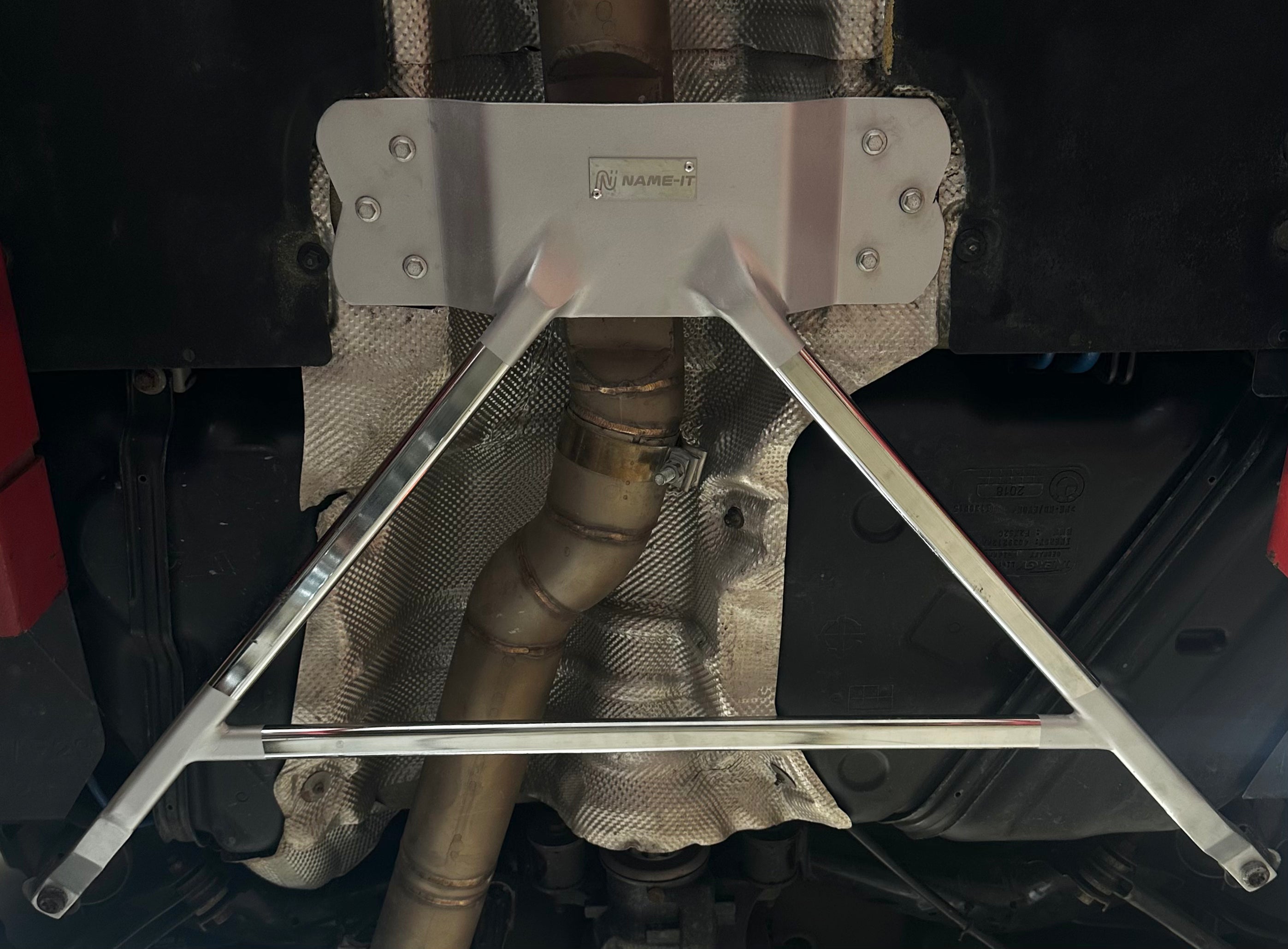 The Name-it Underbody Bracing is designed and custom-fabricated in-house to address Rigidity and exhaust clearance for anyone running a larger exhaust. Engineered with full clearance for 3.5” exhaust setups, this brace reinforces the centre of the chassis while improving underbody protection and airflow management.