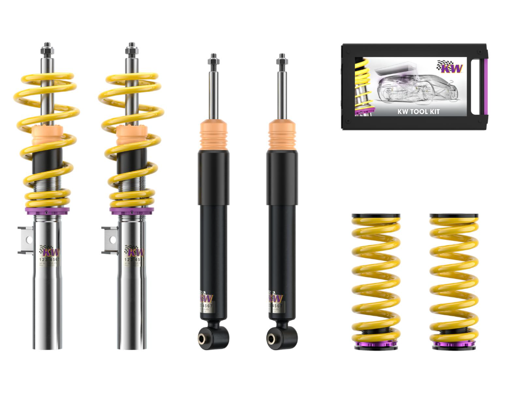 If you have already made your first performance modifications to your vehicle our KW coilovers Variant 3 will compliment your upgrades. The patented KW-valve technology for separate adjustment of rebound and compression damping allows you to individually setup your suspension.The adjustable KW bottom valve adjusts the low-speed range of the compression level in twelve clicks.