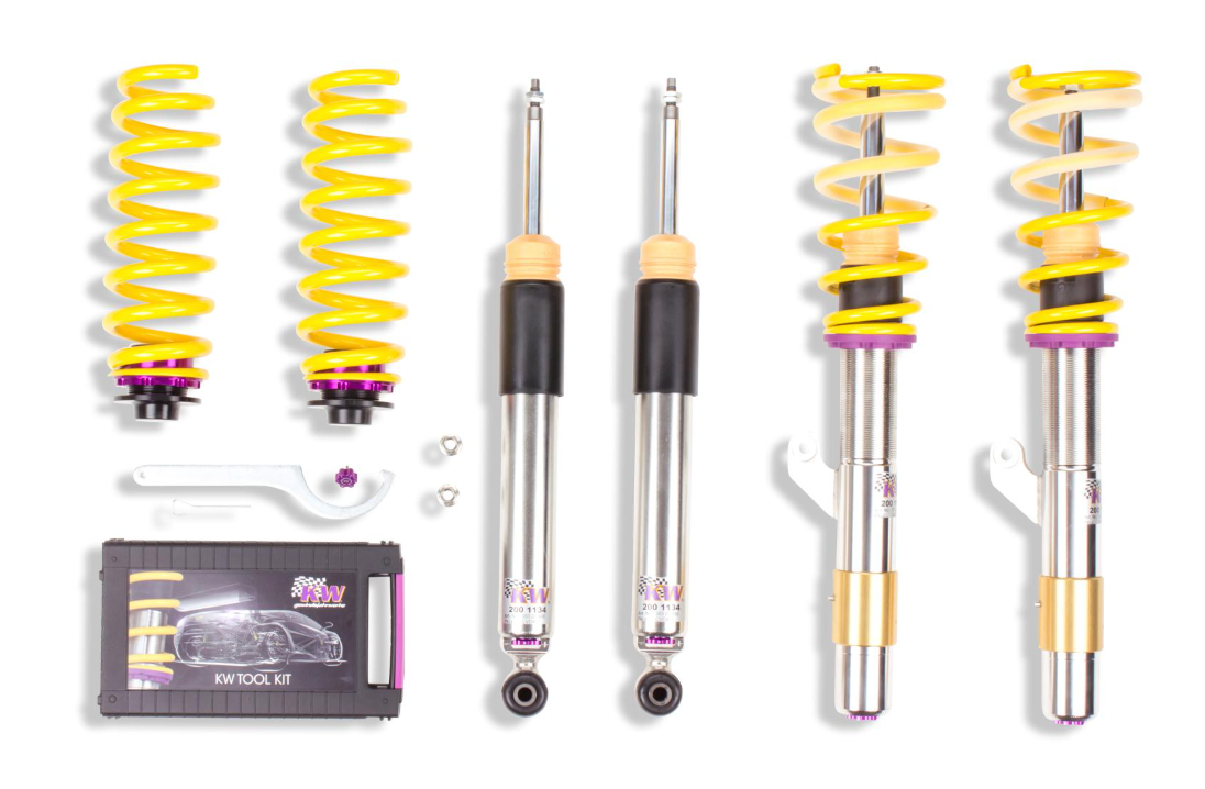If you have already made your first performance modifications to your vehicle our KW coilovers Variant 3 will compliment your upgrades. The patented KW-valve technology for separate adjustment of rebound and compression damping allows you to individually setup your suspension.The adjustable KW bottom valve adjusts the low-speed range of the compression level in twelve clicks.