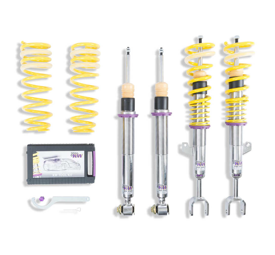 Similar to our racing coilovers from the KW Competition program, the KW coilovers Variant 3 inox-line can be adjusted independently in compression and rebound damping. This individual adjustment possibility is much appreciated by sports car manufacturers, tuners and drivers worldwide.
