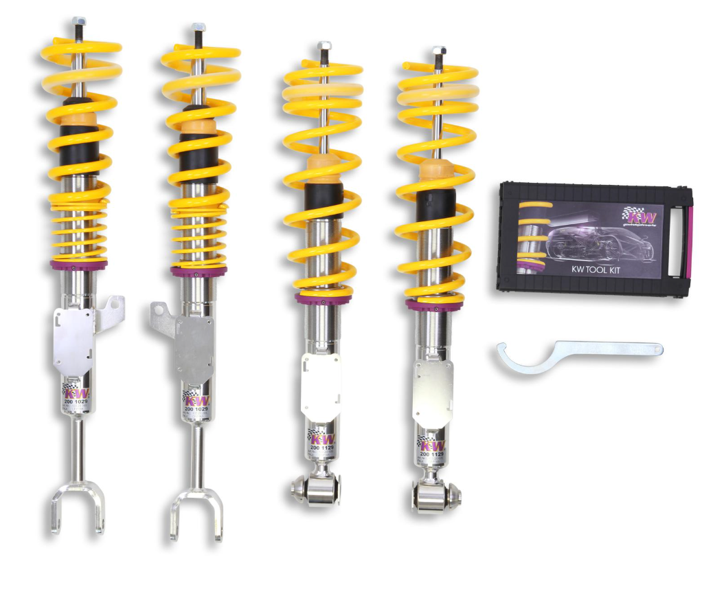 Similar to our racing coilovers from the KW Competition program, the KW coilovers Variant 3 inox-line can be adjusted independently in compression and rebound damping. This individual adjustment possibility is much appreciated by sports car manufacturers, tuners and drivers worldwide.