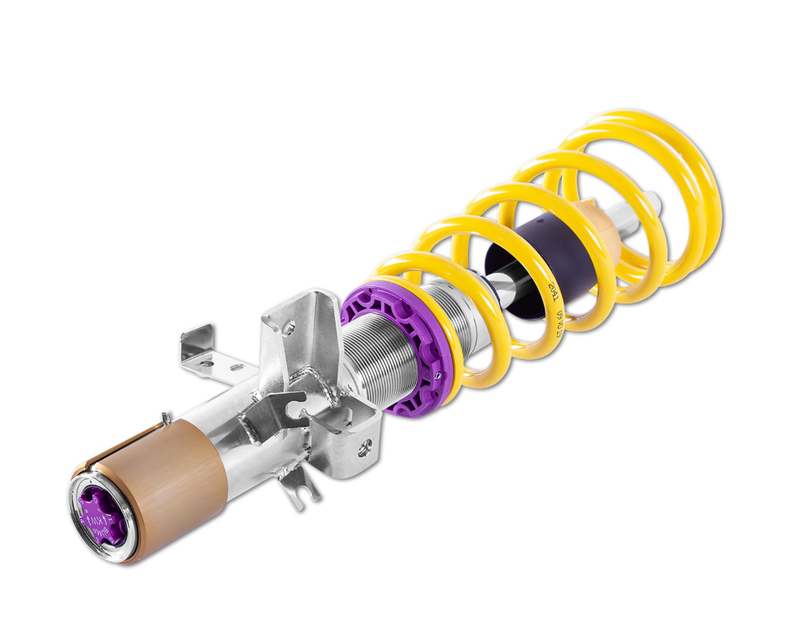 If you have already made your first performance modifications to your vehicle our KW coilovers Variant 3 will compliment your upgrades. The patented KW-valve technology for separate adjustment of rebound and compression damping allows you to individually setup your suspension.The adjustable KW bottom valve adjusts the low-speed range of the compression level in twelve clicks.