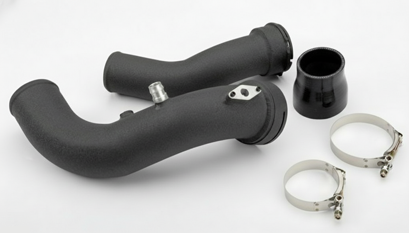 The N55's weakest link has a solution! Replace the stock chargepipe and upgrade to durable, high-quality aluminum built to last. The factory pipe can struggle under heat, pressure, and spirited driving, and WILL split or break off eventually; but our Aluminium chargepipe keeps your N55 turbo flowing freely, maintaining consistent boost and sharper throttle response - even in extreme UAE temperatures.